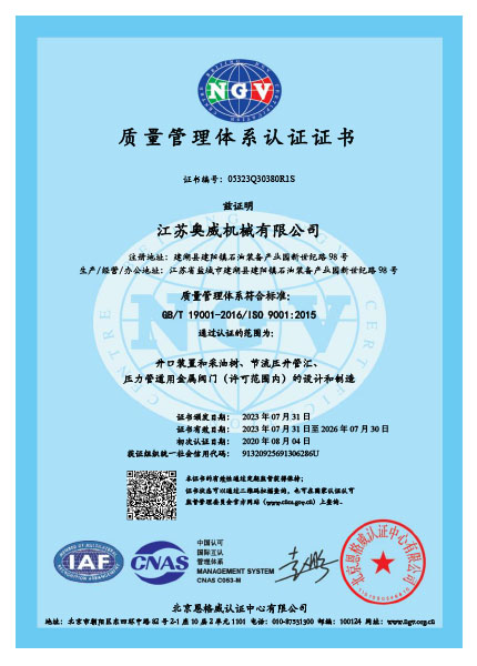 我們一直秉著質(zhì)量可靠、用戶至上的理念為客戶提供服務(wù),公司先后取得API6A,API6D,API16A,API16C,CE,TRCU (EAC),API6FA,ISO9001,ISO14001,ISO45001等國際認(rèn)證,使我們能更加規(guī)范化的按照標(biāo)準(zhǔn)及客戶要求,提供優(yōu)質(zhì)產(chǎn)品。